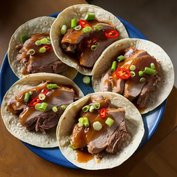 440 minutesThese slow cooker pork tacos feature succulent pork shoulder seasoned with hoisin, ginger, and other aromatic spices, served with a tangy slaw in a warm tortilla.