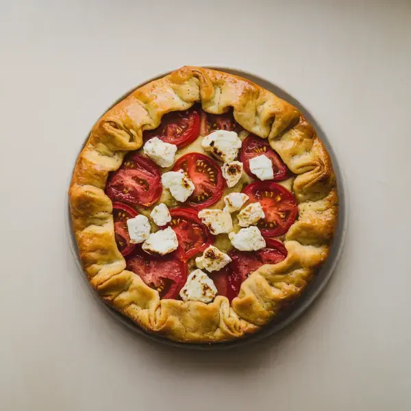 90 minutesA rustic and savory crostata with a flaky pastry crust, filled with sautéed leeks, heirloom tomatoes, and crumbled goat cheese, flavored with fresh thyme, basil, and chives.