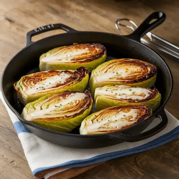 45 minutesA delicious fusion of roasted cabbage and the classic flavors of Cacio e Pepe with caramelized edges, tangy dressing, and topped with melted Pecorino cheese.