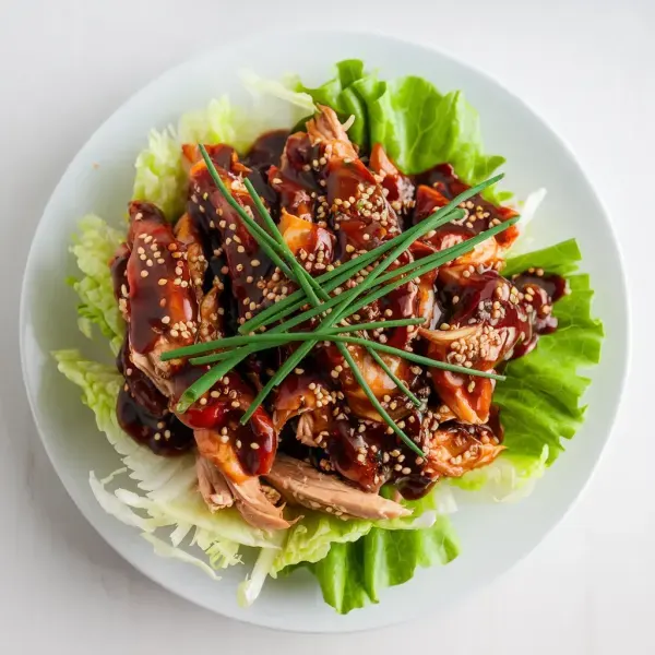 Tender, flavorful shredded chicken paired perfectly with a fresh crunch of iceberg lettuce in a savory sesame sauce.