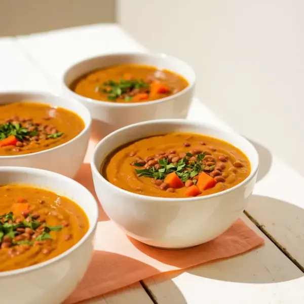 25 minutesA warm and comforting soup made with carrots, red lentils, and a hint of fresh parsley.